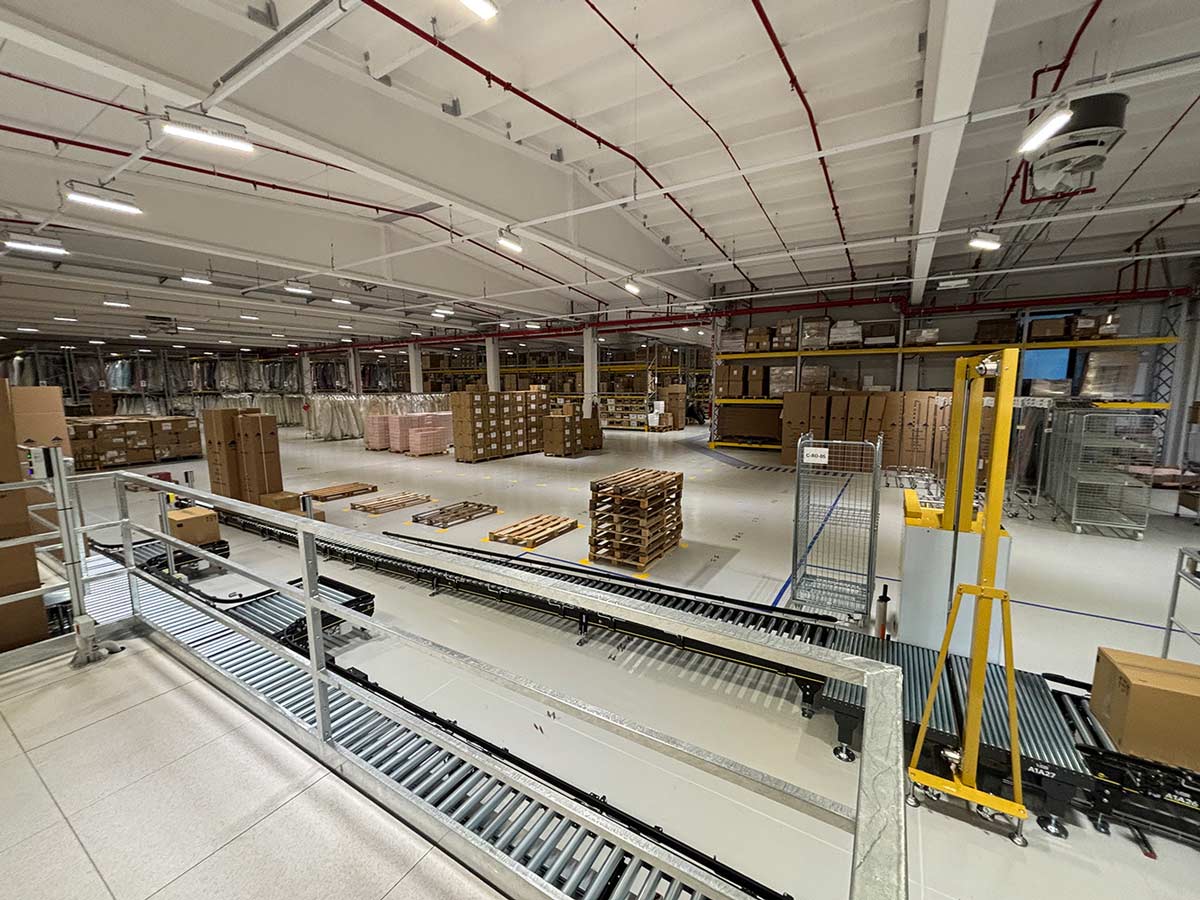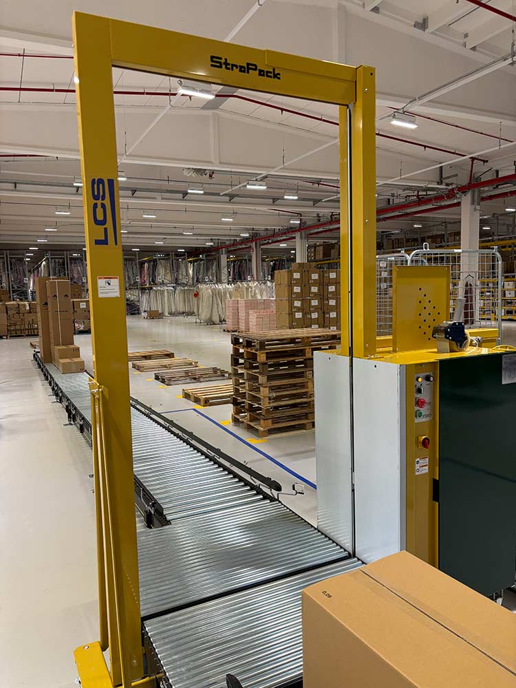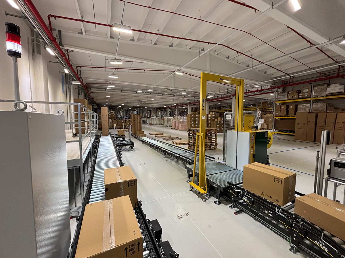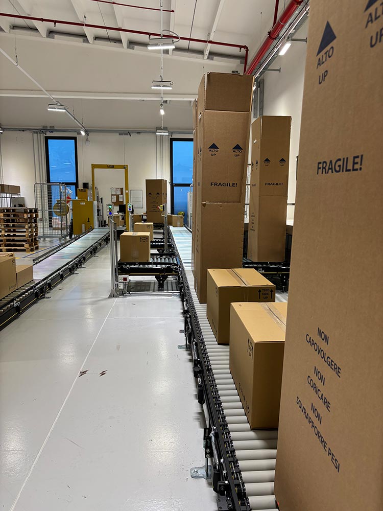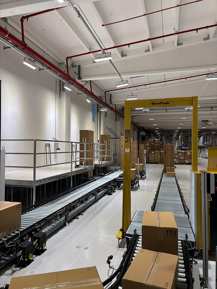 Introducing automatic handling and packaging of assembled orders to improve the efficiency and ergonomics of operational and quality control processes; Managing cardboard boxes of extremely variable sizes: from accessory boxes to vertical trunks for “hanging garments” with a high center of gravity, which is quite unusual for intralogistics systems.