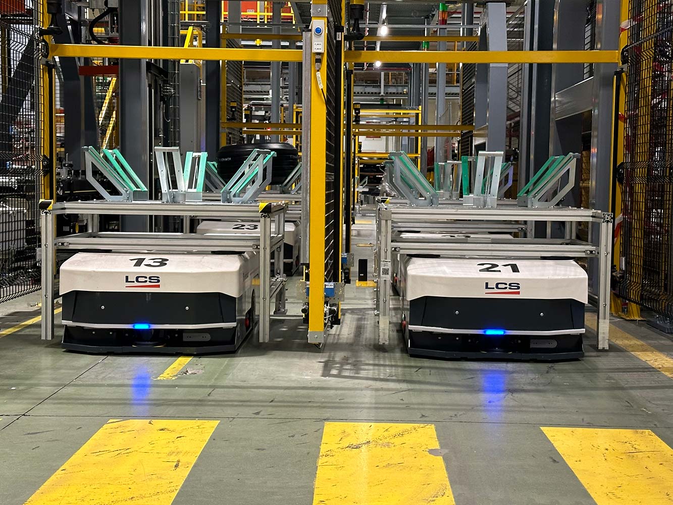 Il cliente ha richiesto un sistema completamente automatico funzionante 24 ore su 24, 7 giorni su 7, per trasferire i pneumatici crudi dal reparto di confezionamento al reparto di vulcanizzazione, creando un buffer interoperazionale. L’installazione è avvenuta in un ambiente «brown field» con un impatto minimo sulla produzione.