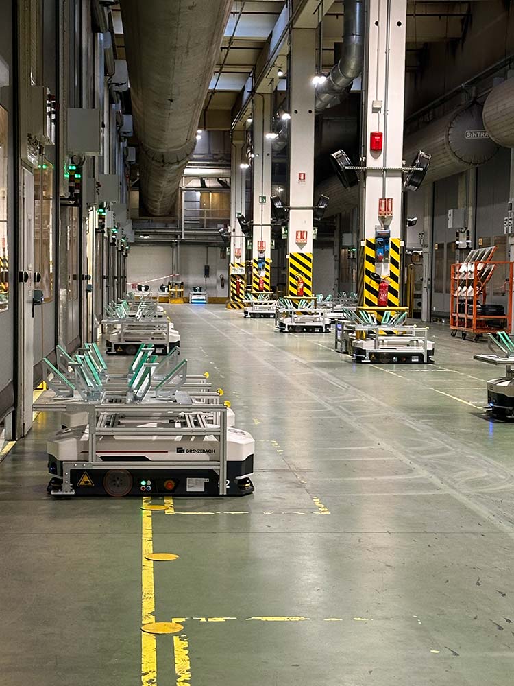 • Sistemi AGV con 54 veicoli integrati con il software di gestione flotte Fluid Manager