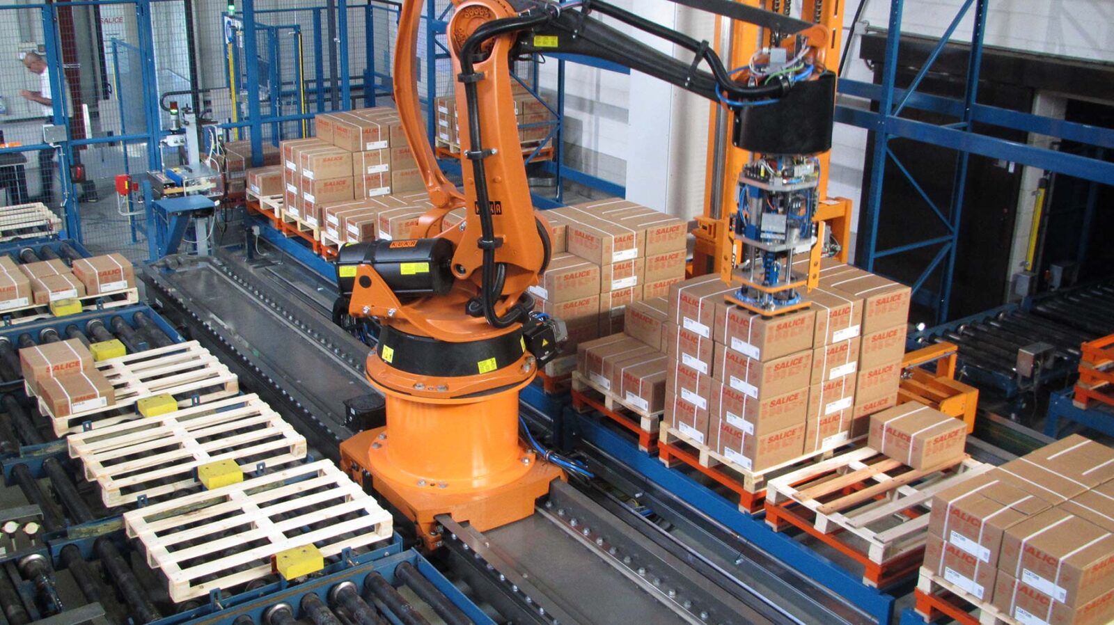 Pallettizzazione cartoni di gelato con robot antropomorfo